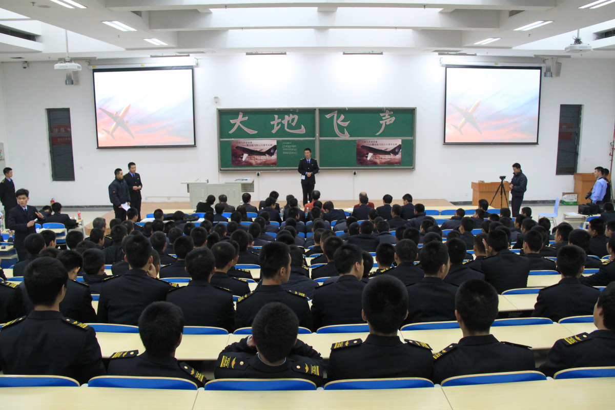杜承俊——同样,作为飞行学员,我们最初的梦想是什么?仰望蓝天!我们来飞院的目的是什么?渴望蓝天!我们最后要取得的结果是什么?拥抱蓝天!