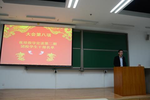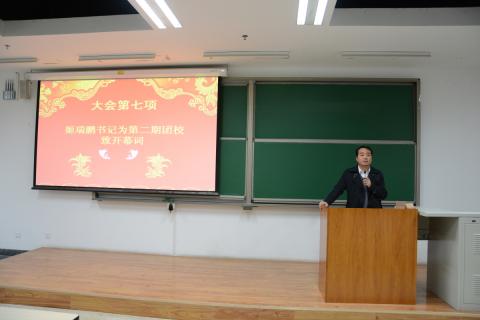 分团委书记、团校董事长姬瑞鹏为此次大会致辞。他首先对第一期团校学员顺利结业表示祝贺,并欢迎第二期学员加入团校的大家庭。希望学员们再接再厉,做出每一期的特色。随后从团校开设的意义、目的和宗旨讲述团校开设的初衷,从向党推优和员工干部培养两个方面为第二期学员进行了讲解。希望参与团校工作的辅导员、员工干部和学员们能够抓住机会,积极锻炼,提高自己的综合素质。