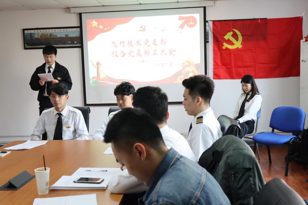 在清点完人数后,赵圆同志宣布了此次以讨论郭煜、保健宏等预备党员转正问题的飞行技术党支部转正大会开始。