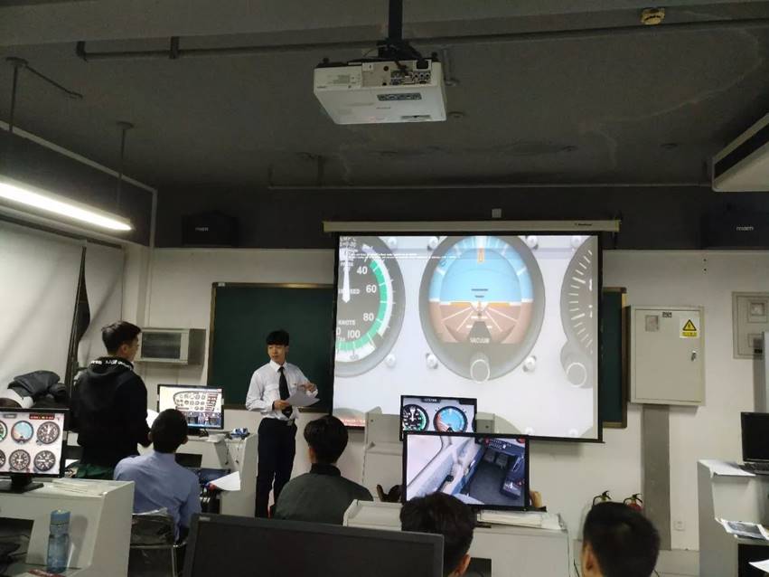 启动仪式分两个阶段:首先,水老师向在场的师生简要介绍了CFC筹办初衷、培养计划、教学模式、发展途径和授课方式。CFC工作团队成员张恩昊同学向在场师生介绍了CFC课程的可持续性发展的计划流程及模拟机训练课程实验室的管理与章程。第二阶段,由CFC主要负责人钮一夫同学率领彭淦(塞斯纳172机型教学负责人)、庄子(波音737机型教学负责人)介绍了课程大纲和训练细则。第一节课由塞斯纳教学负责人彭淦开讲,在场学员积极参与、认真研讨,现场教学气氛融洽热烈。通过此次实机操作训练,大家对塞斯纳仪器仪表有了更加直观的了解,教学效果明显。