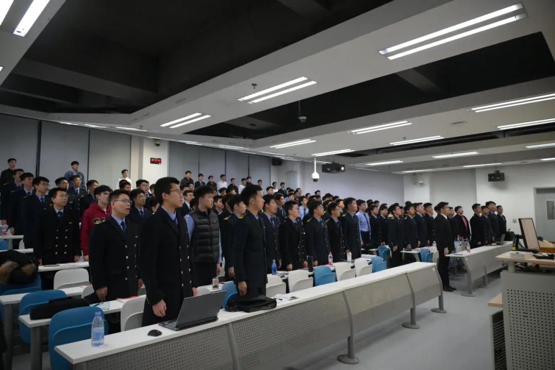 开班仪式第一项,会场内全体人员肃立,齐声高唱《国际歌》。这段由无产阶级革命先辈们共创的旋律振奋了新学员们的精神,昂扬了新学员们的斗志。他们不负韶华,只争朝夕,力争将最美好的年华投入到对党的思想与事业的学习中去。