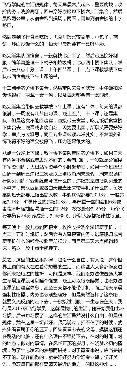 下面是学员们在飞院生活几个月之后的一些感悟以及建议。