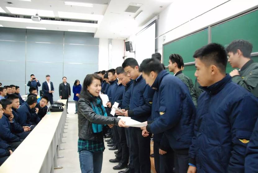 最后,王充指导宣读了2017级军训团优秀学员获得者名单,于经理为获奖者颁发证书,并组织获奖学员合影留念。