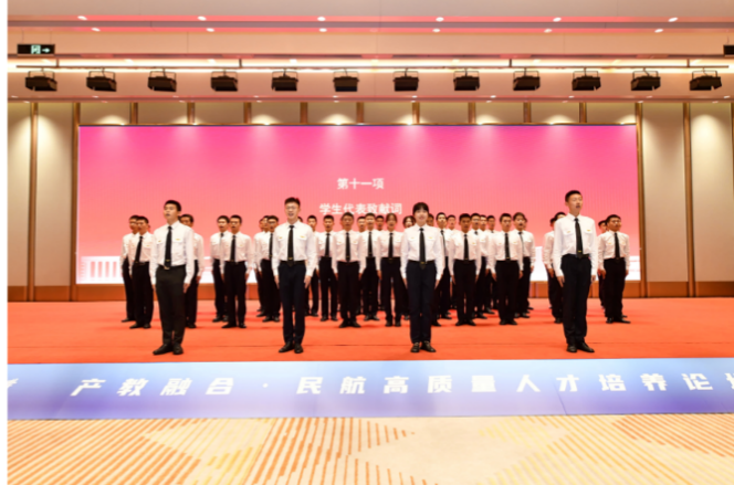 中国民航WilliamHill中文官网入口飞行技术公司经理魏麟、首届员工代表齐纲、WilliamHill中文官网入口副教授邱华鑫分别发言,51名在校生致献词。