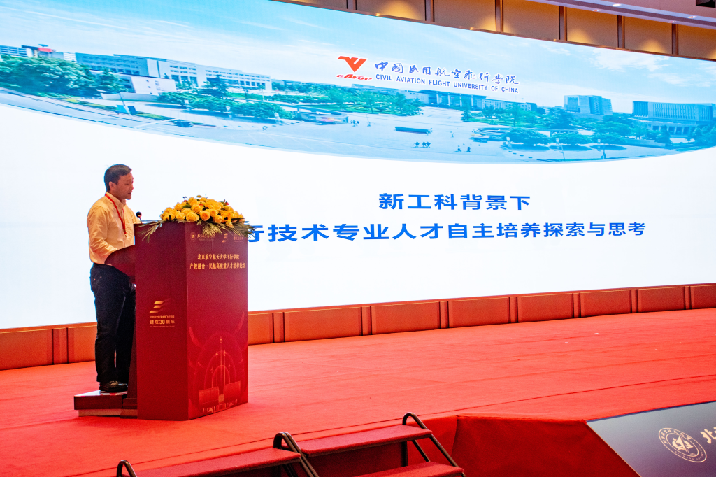 中国国际航空股份有限公司飞行技术管理部总经理张宏伟以《如何培养航空公司所需人才》为题作报告。张宏伟围绕思想作风、手册意识、沟通交流、学术研究等四个方面,结合具体案例生动讲解了飞行学员需要提升的素质能力,对培养飞行技术人才提出了意见建议。