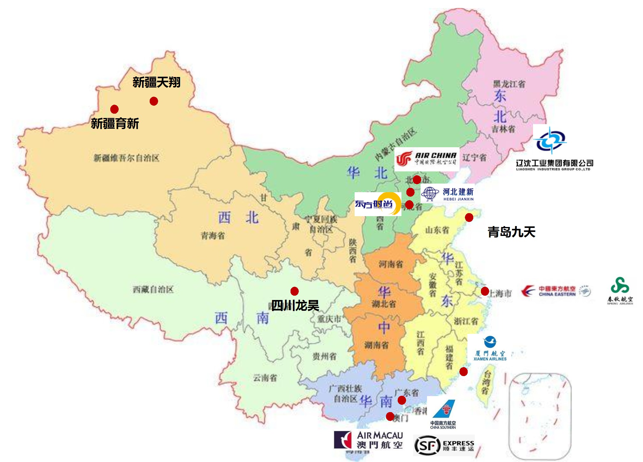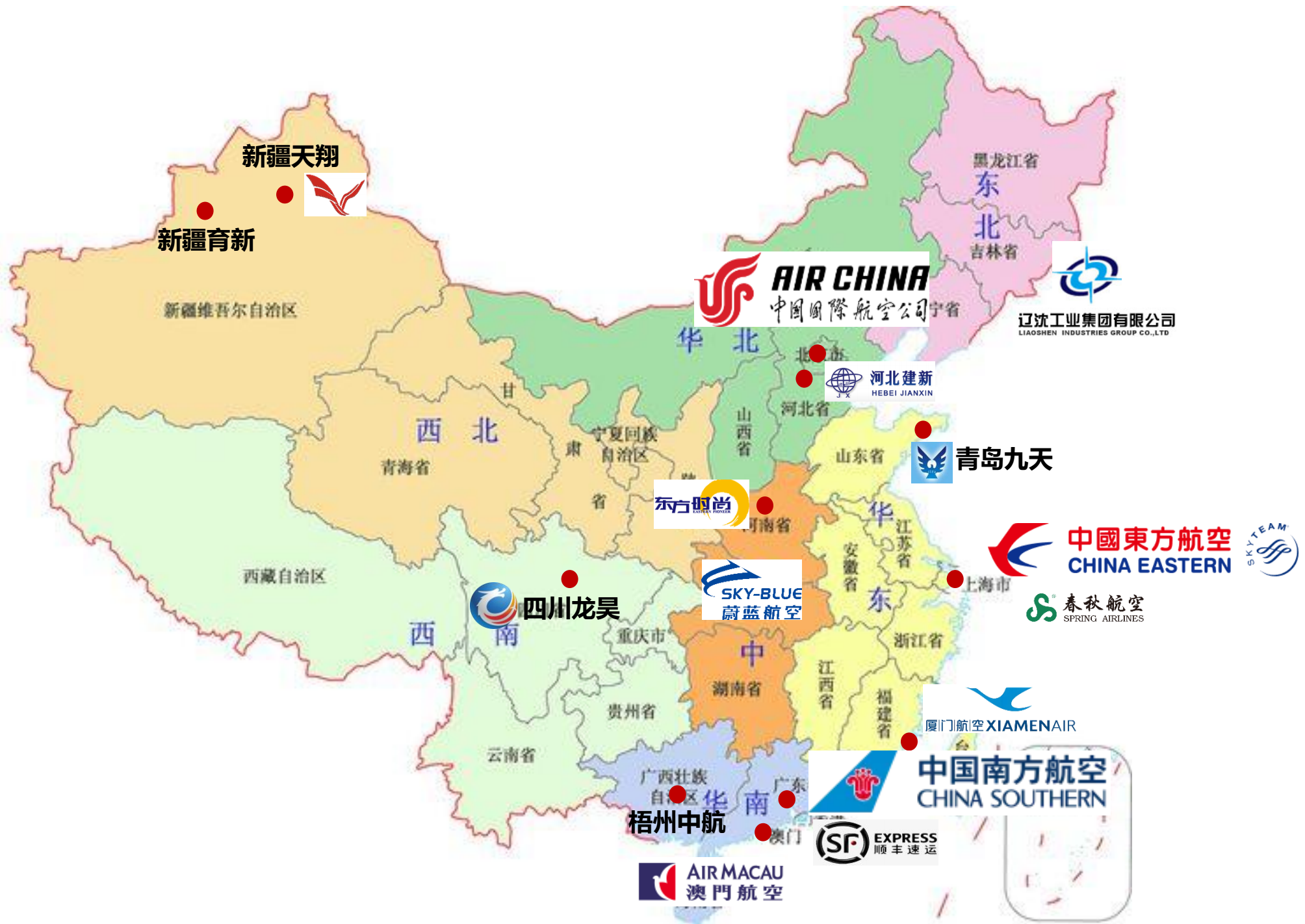 辽沈工业集团有限公司、南方航空珠海翔翼公司等。